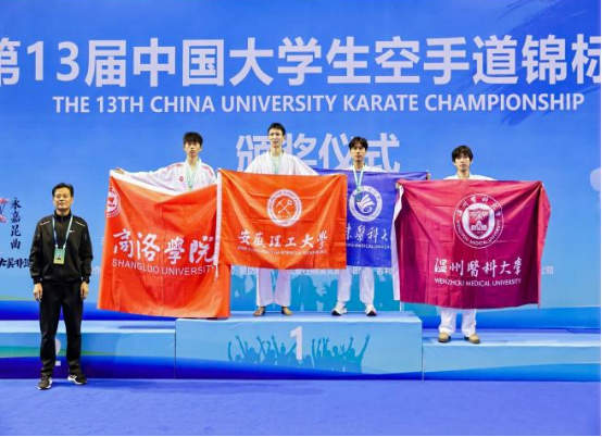 11月24日至28日,第13届中国大学生空手道锦标赛在浙江省温州市永嘉县举行。经过数日激烈角逐,我校空手道代表队表现优异,共夺得3枚银牌、2枚铜牌以及男子团体铜牌。队员范思宇被评为“优秀运动员”,体育教学研究部教师桑国鹏获评“优秀教练员”。